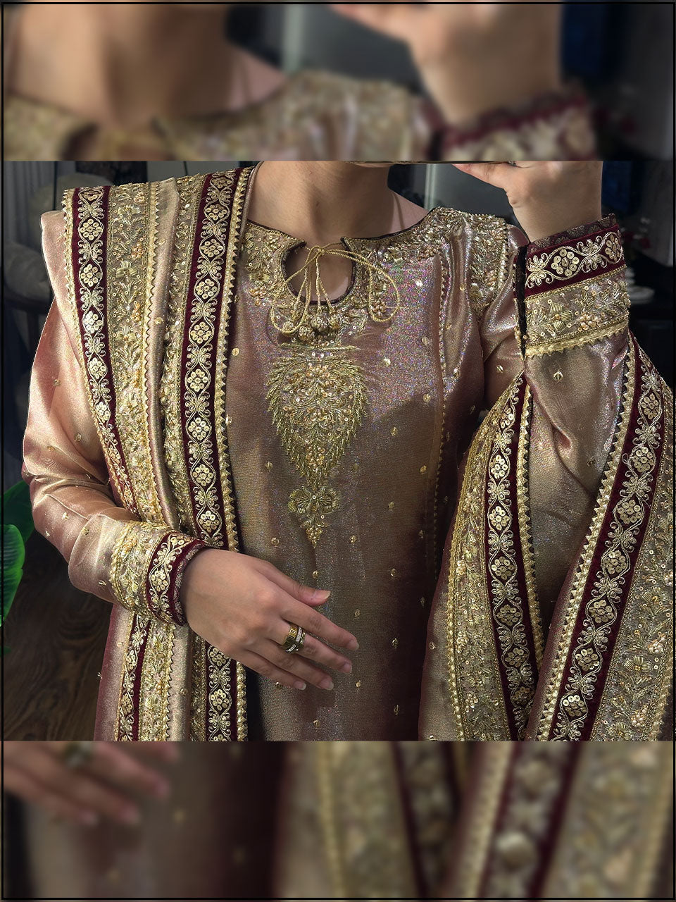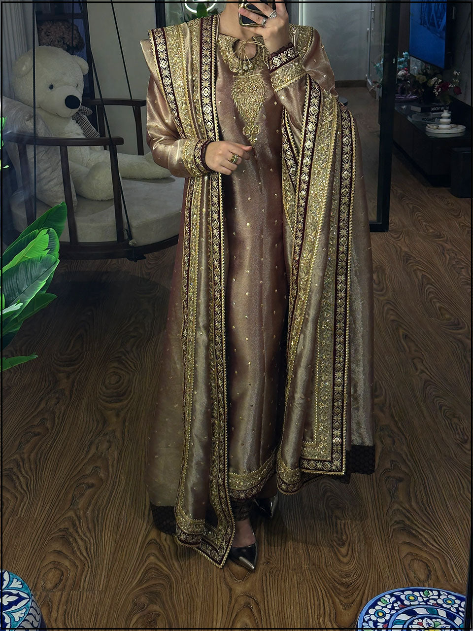 ATM26128 | Pakistani Designer 3 Piece Silk Suit Handmade Chatai Design