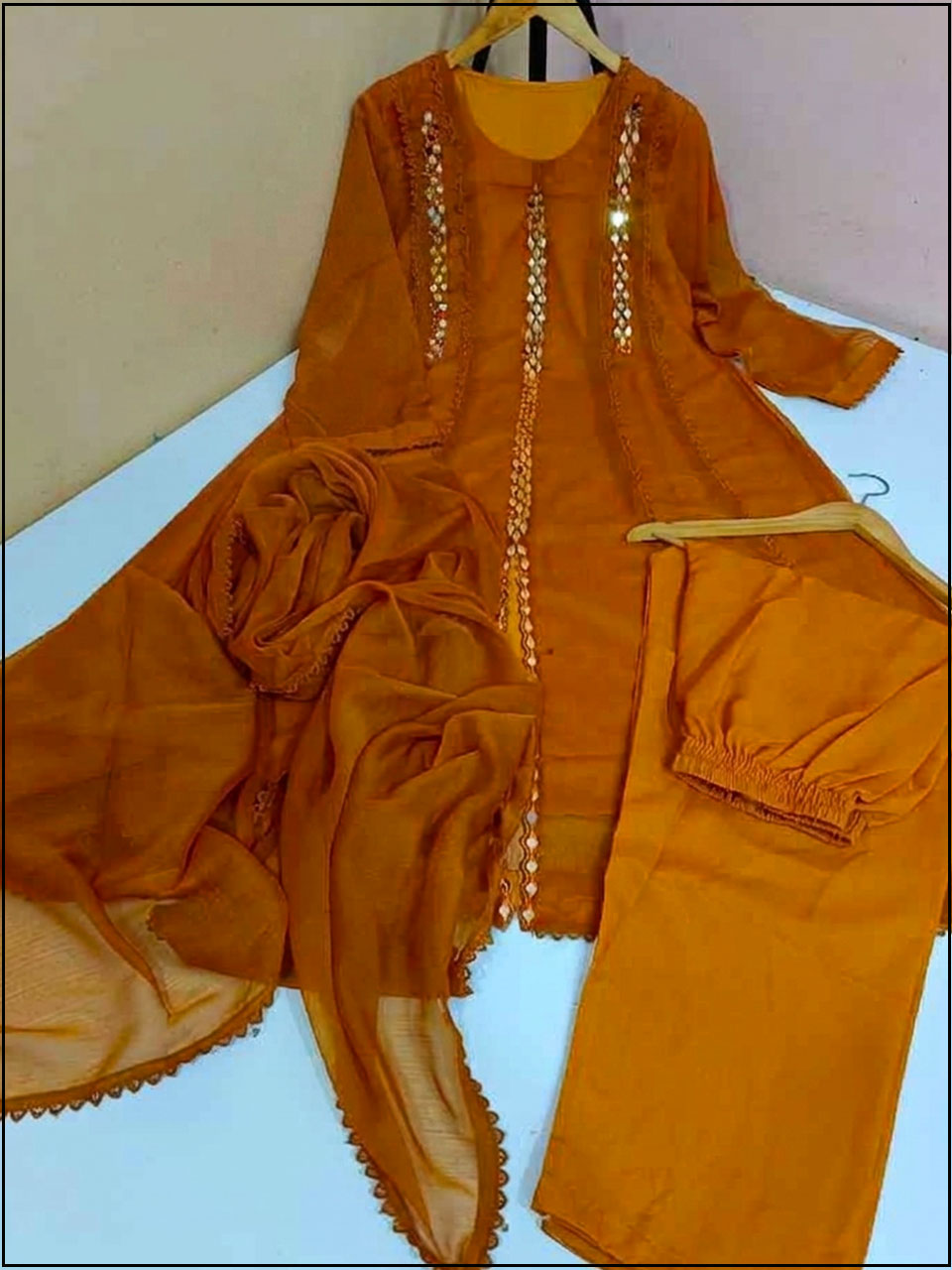 ATM2022333 | 3 Piece Chiffon Readymade Suit In Frock Style