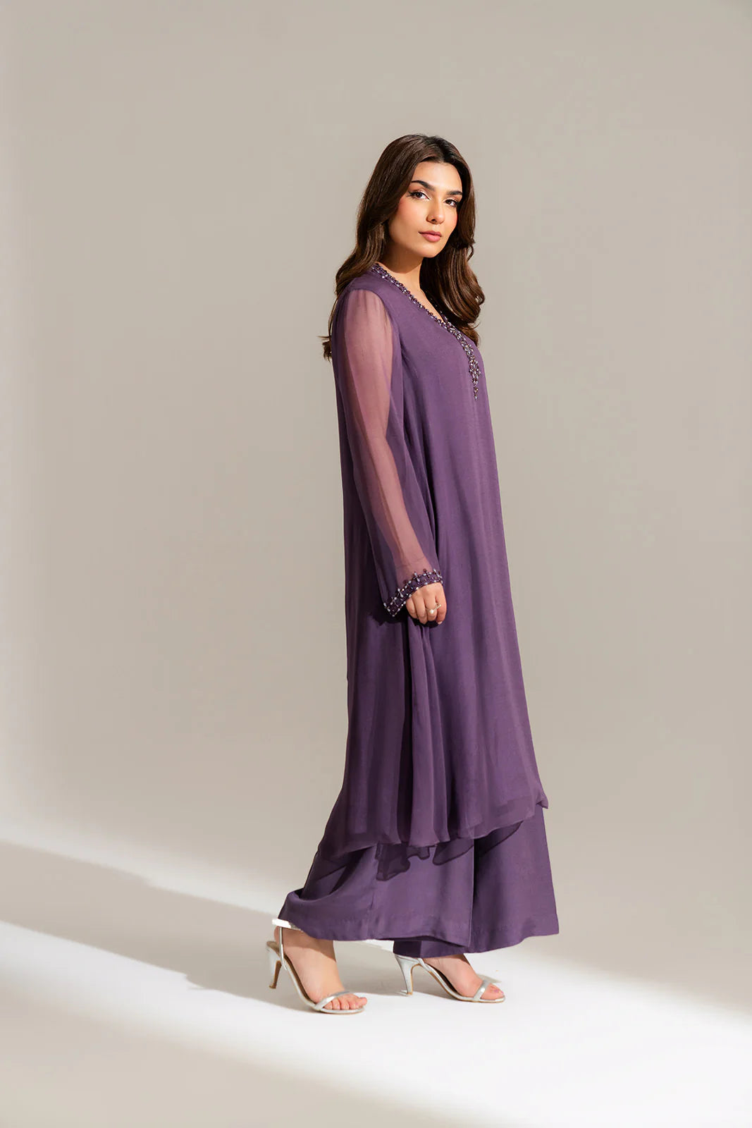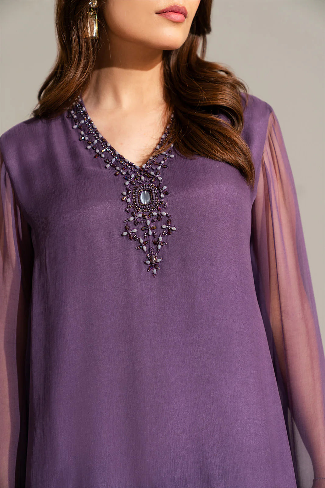 ATM162 | 3 Piece Violet Silk Readymade Suit With Organza Dupatta