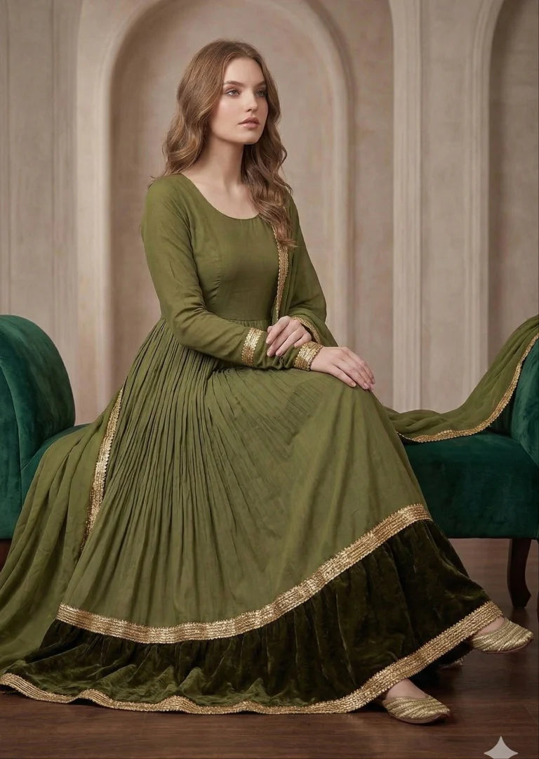 ATM26211 | Pakistani Designer's Chiffon Readymade Anarkali-style maxi dress