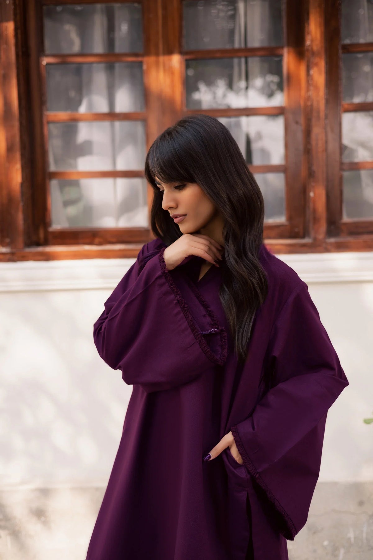 ATM26180 | Pakistani Designer Solid Dark Plum Stitched 2PC Khaddar Co-Ord Set